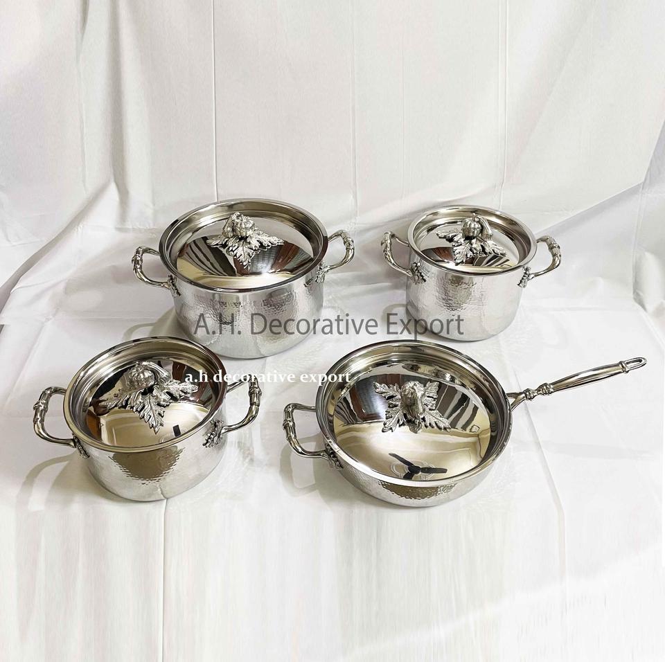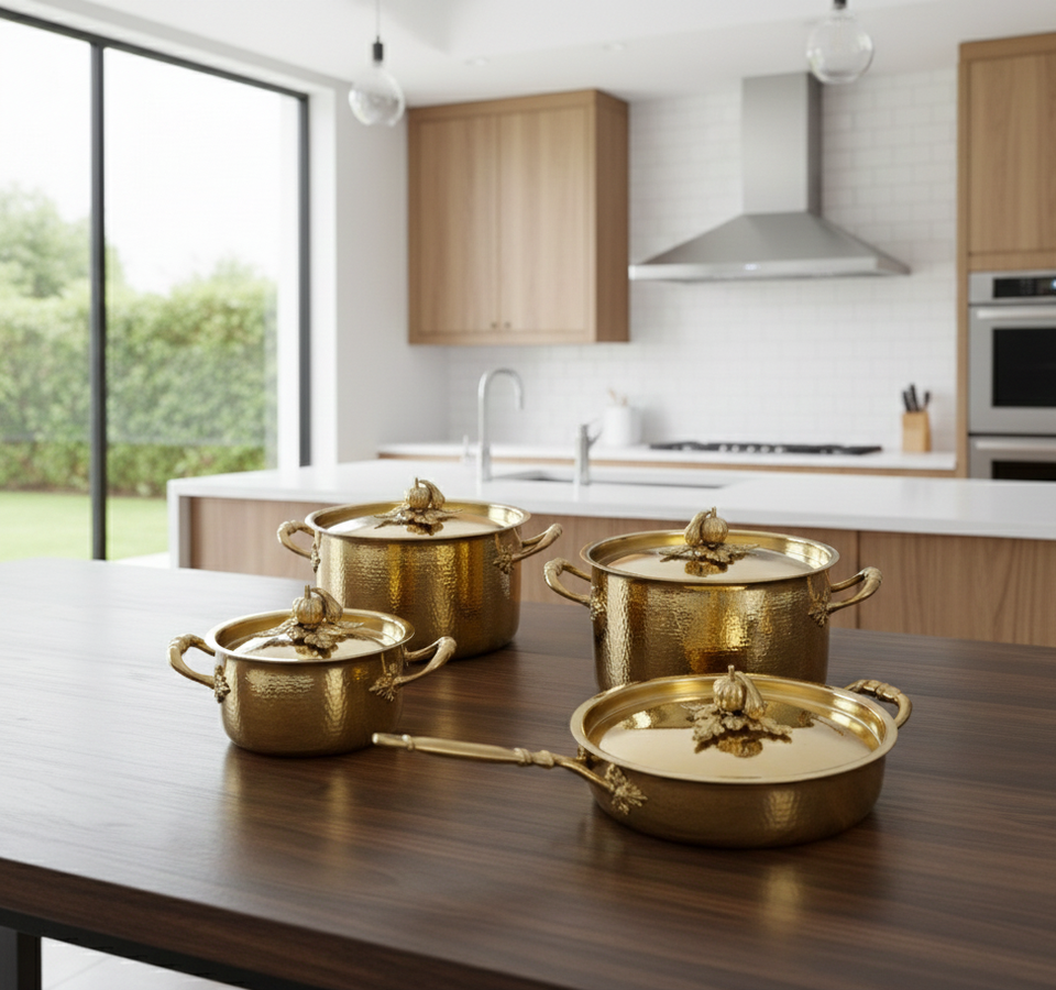 Premium Hammered Stainless Steel Food Safe Gold Set with Matching Pumpkin Lid Luxury Kitchen Set Casserole Pan & Pots for Sale