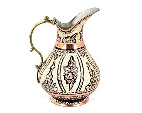 Premium Hand Painted Engraved Copper Water Jug Brass Handle Pitcher for Table Use an Home Decor Kitchenware Restaurant