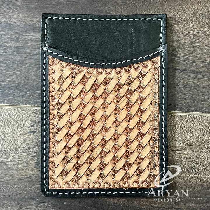 Hand Tooled Cow Leather Credit Card Holder Wallet