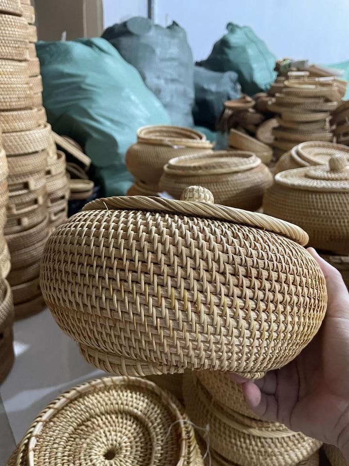 Premium Hand Woven Round Rattan Storage Box With Lid for Fruits and Bread Competitive Price From Vietnam