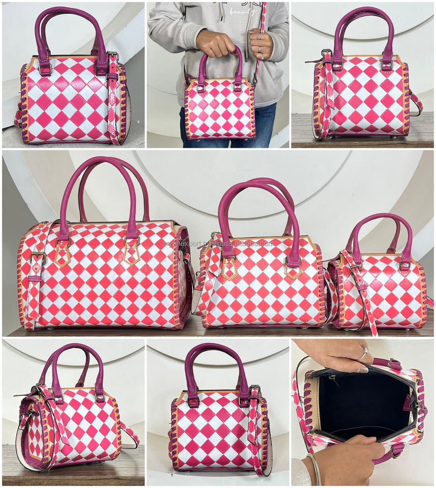 Product name:Hand Tooled Checkered Leather Small Speedy Duffle Bags