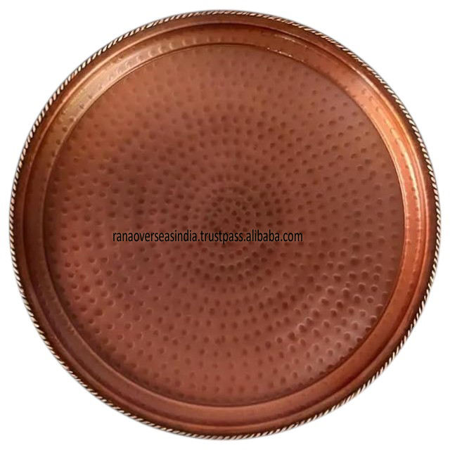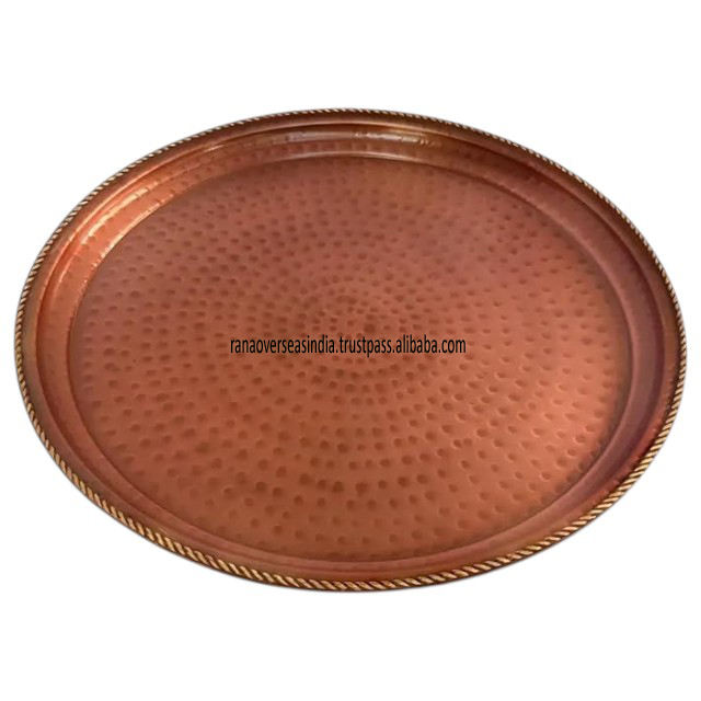 Usage:Premium Handcrafted Hammered Copper Serving Tray with Brass Rim