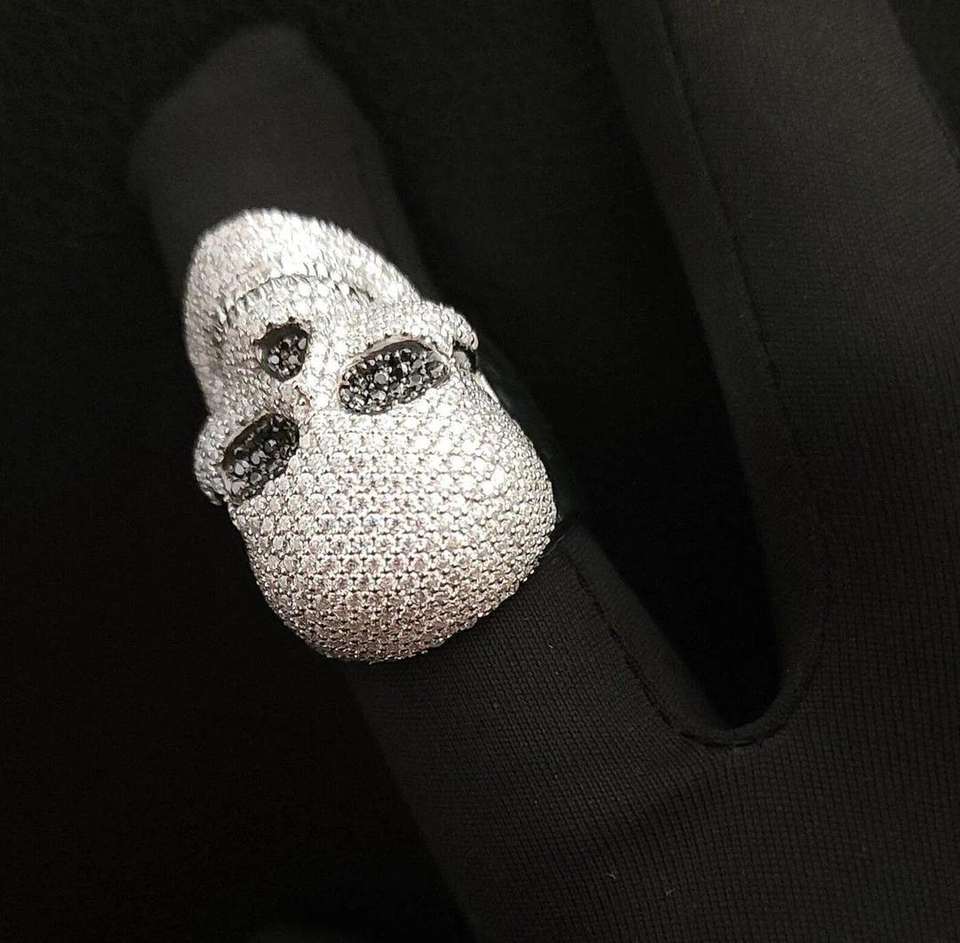 Premium Handcrafted Iced Out Skull Ring Silver with Diamond Look Stones Durable Mens Jewelry for Gifts Daily Wear Hip Hop Style