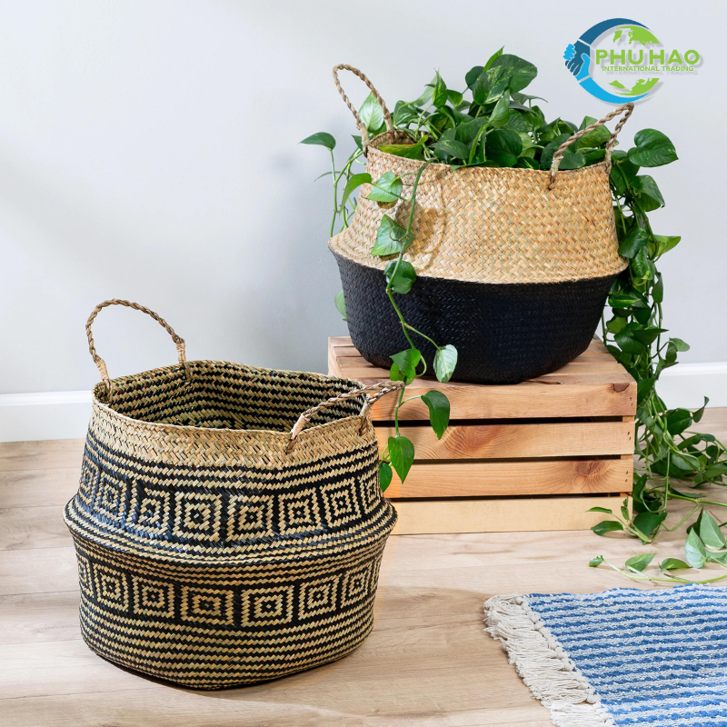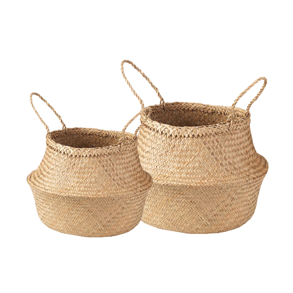 Premium Handcrafted SEAGRASS BELLY BASKETS with Handles Perfect for Fresh Fruit, Plants, and Home Storage Laundry Organizer