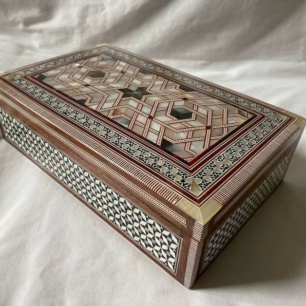 Premium Handcrafted Wooden Mother Pearl Inlay Floral Engraved Modern Luxury Jewelry Storage Box for Rings Bracelets Earrings