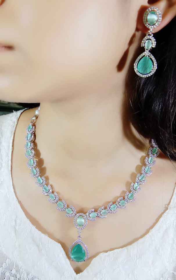 Premium Handmade American Diamond Pendant Set Gold Plated CZ Stone for Party Wear Weddings Great Gift Idea Bulk Product