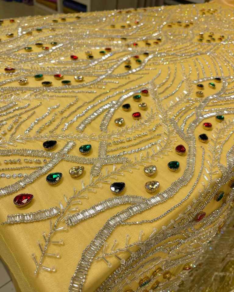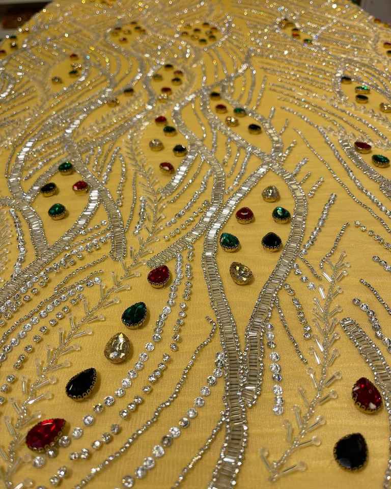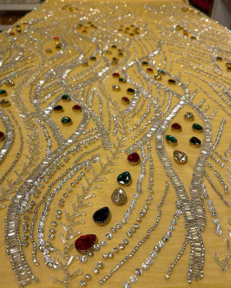 Premium Handmade Beaded Embroidery Mesh Fabric with Sequins Stones and Rhinestones for Party Dress Wedding Gown Dress