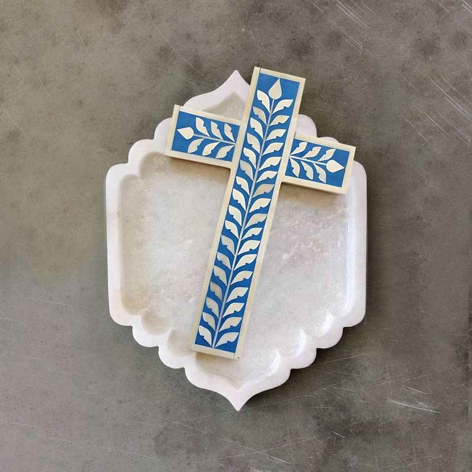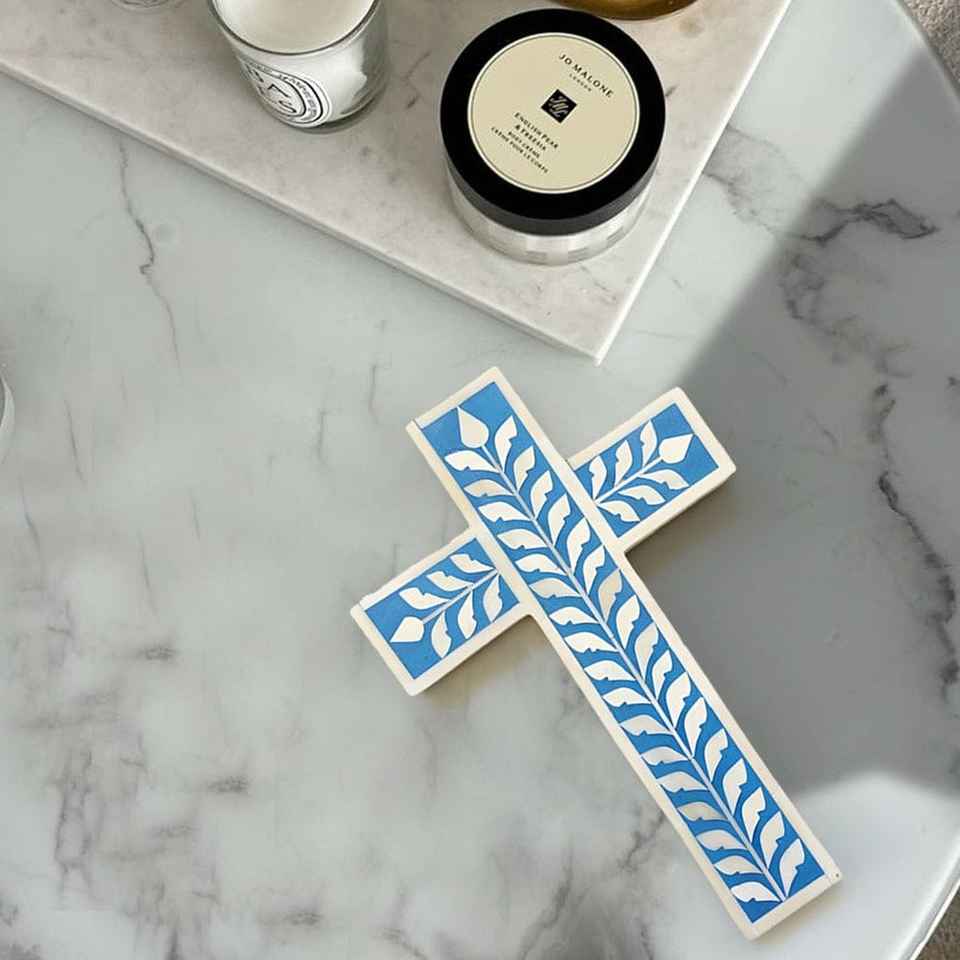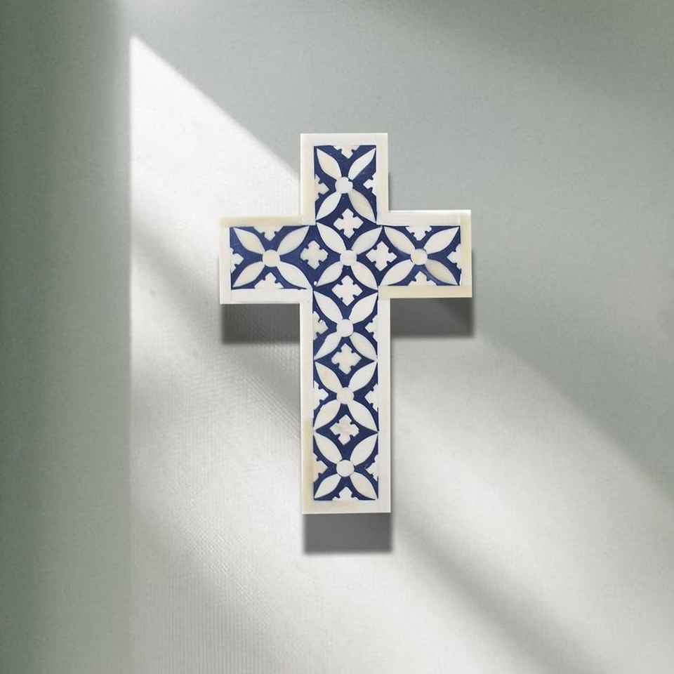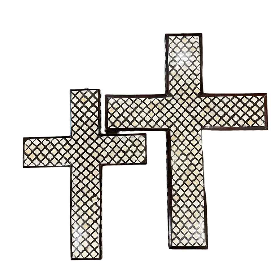 Premium Handmade Bone Inlay Mother of Pearl Cross Ornament Perfect for Home Wall Hanging Religious Festival Holiday Decoration