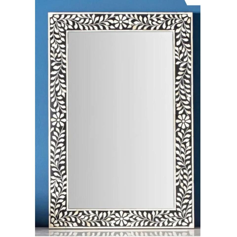 Premium Handmade Bone Inlay Rectangle Frame Art Deco Mirror Indian Artistic Boho Design for Birthday
