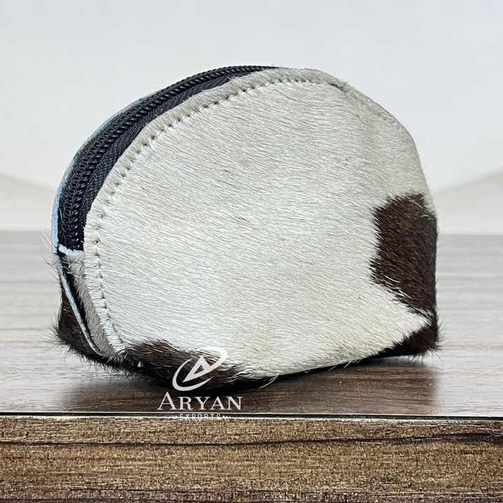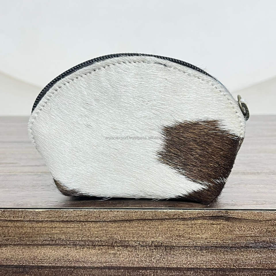 Premium Handmade Cowhide Genuine Leather Coin Purses New Hair On Leather Soft Zipper Pouch Small Wallet For Women's Daily Use