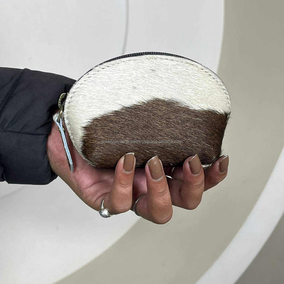 Premium Handmade Cowhide Genuine Leather Coin Purses New Hair On Leather Soft Zipper Pouch Small Wallet For Women's Daily Use
