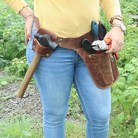 Premium Handmade Full Grain Genuine Leather Florist Tool Belt Brown Leather Belts for Construction Gardener Waist Pouch