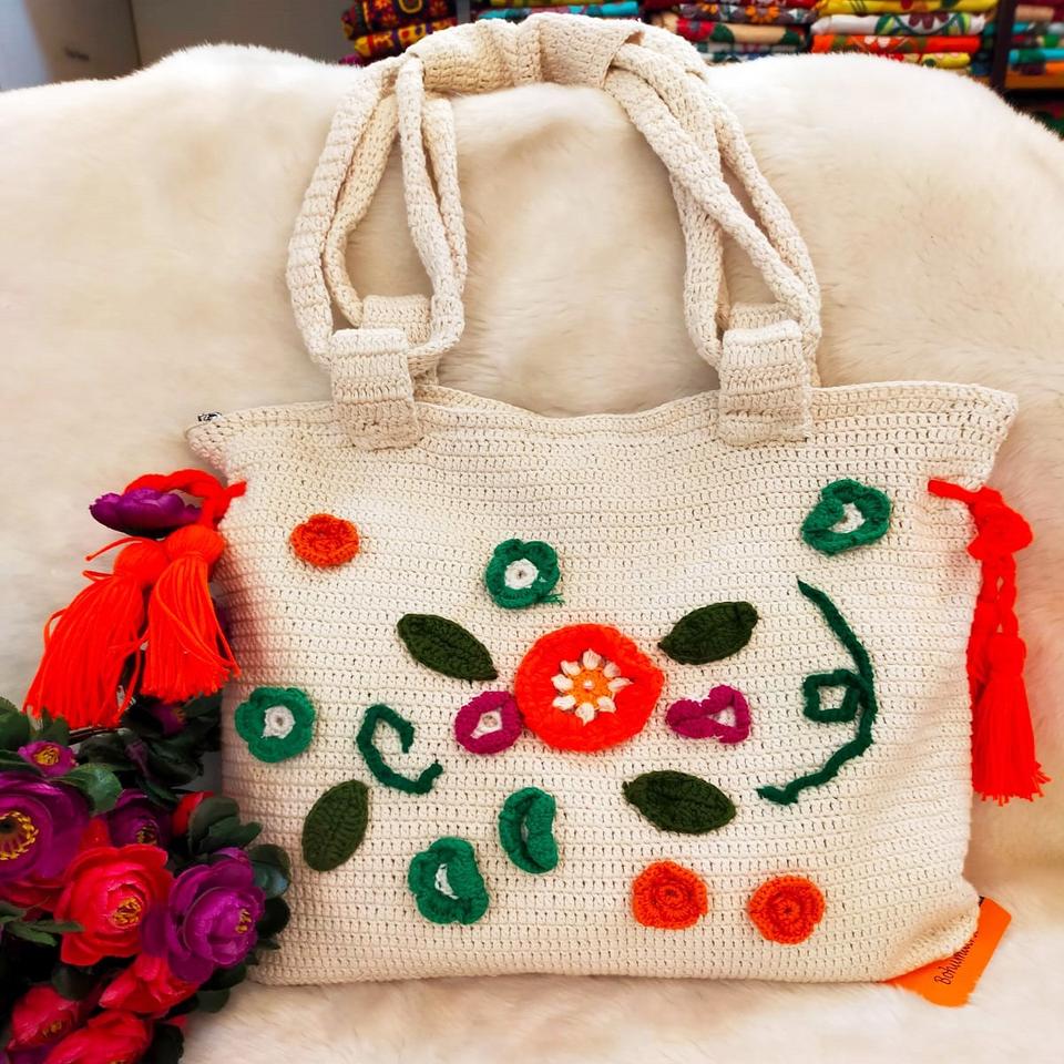 Premium Handmade Ladies Cotton Tote Bag Crafted by Bangladeshi Women Superior Quality & Sustainable Embroidered Floral Design
