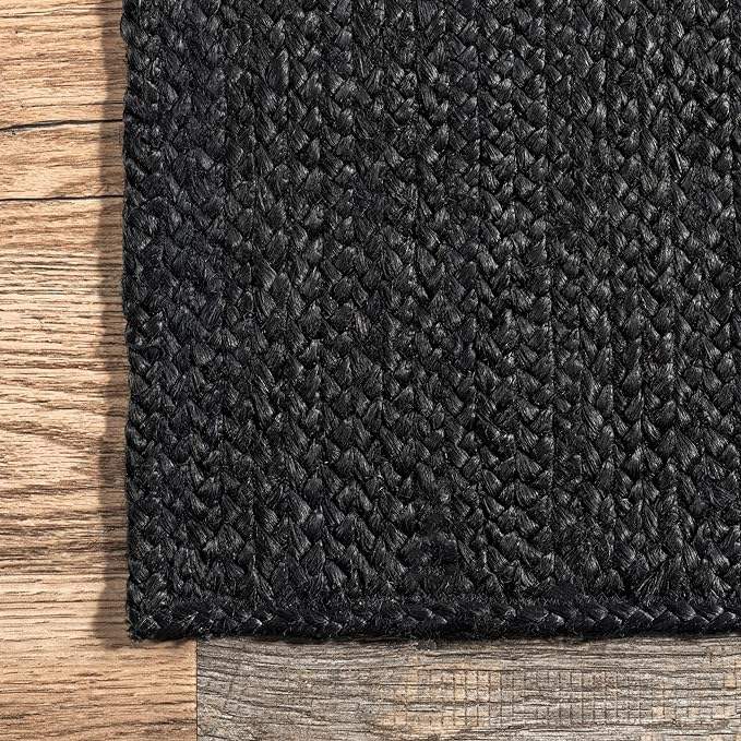Premium Handmade Navy Blue Jute Rug Geometric Braided Natural Fiber Carpet Collection for Home Hotel Room Office Area Rugs Sets