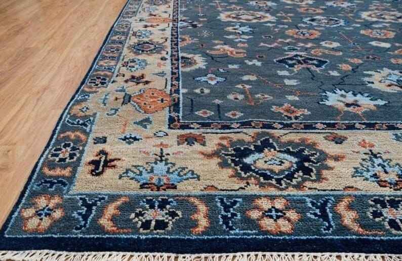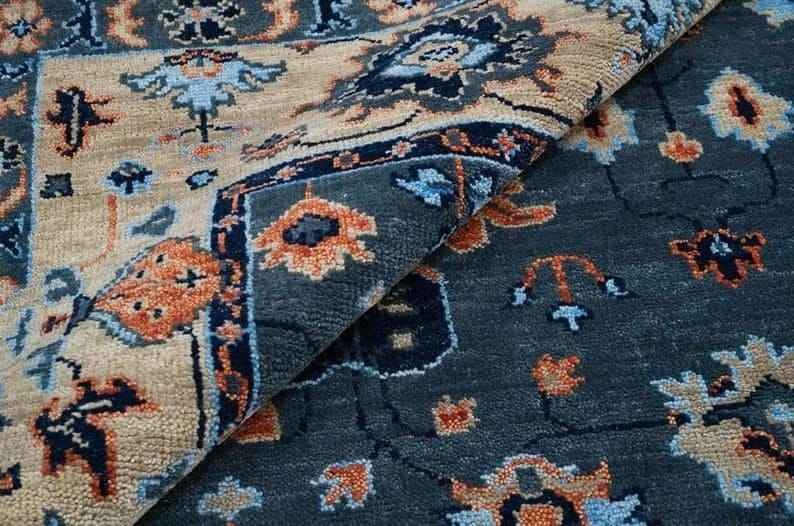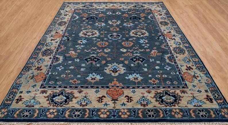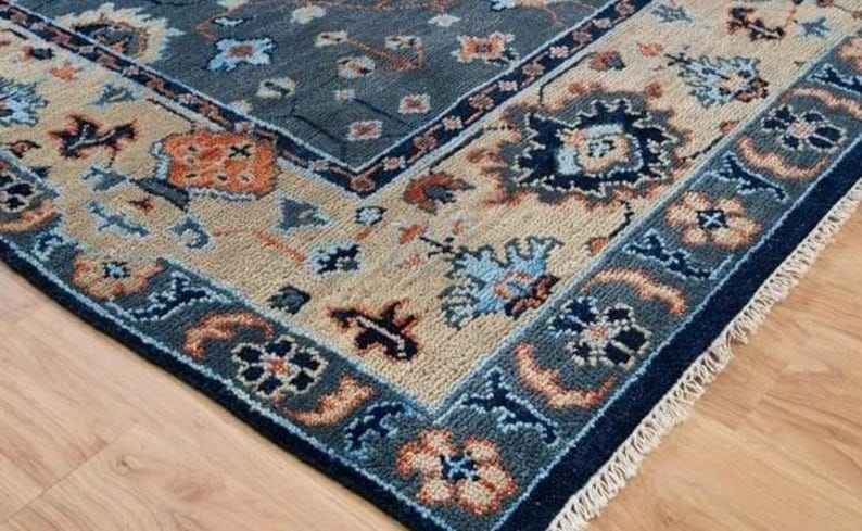Dark Blue Multicolor Oushak Knotted Rug:Dark Blue Multicolor Oushak Knotted Rug 8x10