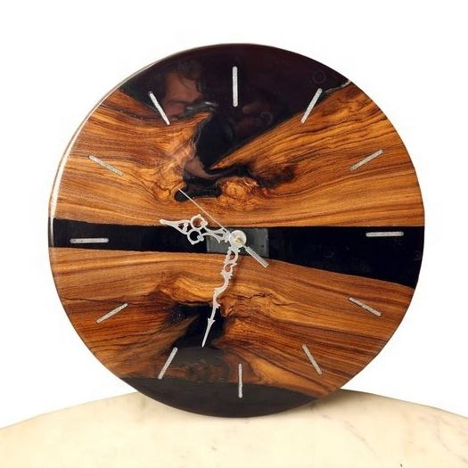 Premium Handmade Red Epoxy Resin Wooden Wall Clock Elegant Design Wooden Epoxy Wall Clock for Sale Low Price