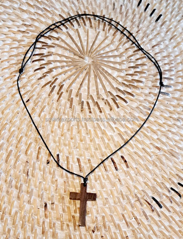 Premium Handmade Religious Cross Necklace Art Style Mango Wood Crafts Pendant Top Supplier Export Quality Model Pattern Polished