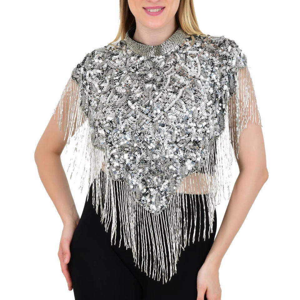 Premium Handmade Sequin Embroidery Scarf Stole Poncho Dress Style Woman Ladies Best Wearable Wedding Birthday Night Club Party