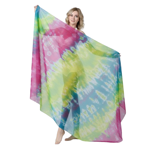 Premium Handmade Silk/Cotton Veil for Belly Dancing Women's Gradual Color Tie-Dye Hand Drawn Design Shawl/Scarf 210x110cm