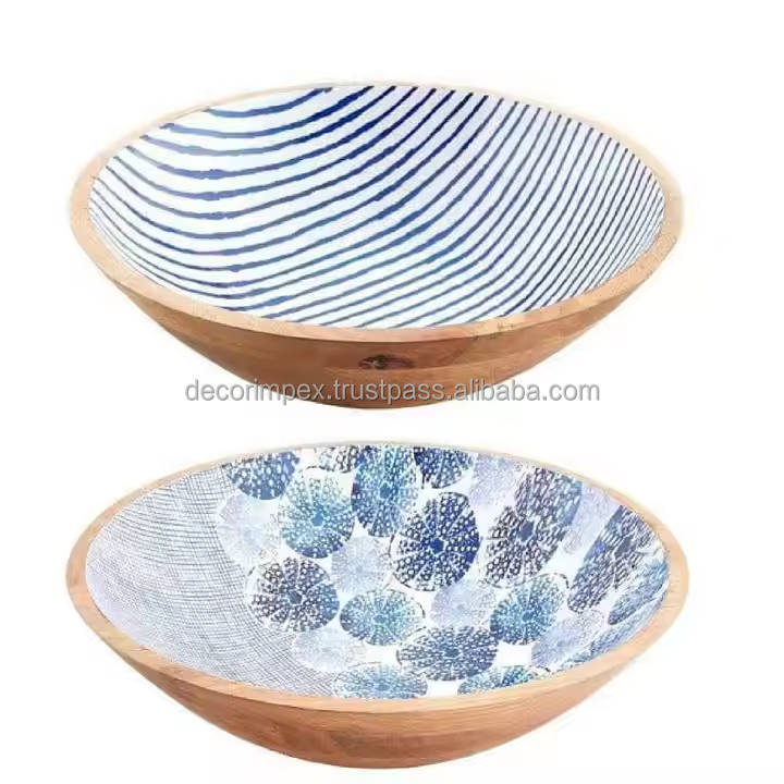 Premium Handmade Wooden Salad Bowl with Enamel Finish and Customizable Print Crafted From Mango Wood for Multipurpose Use