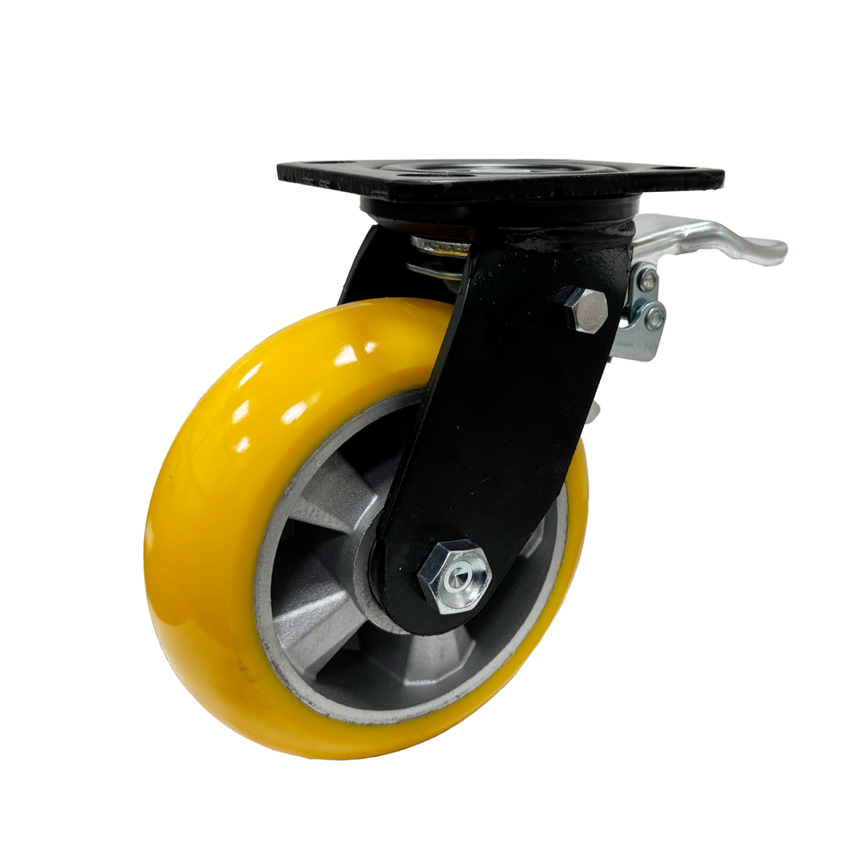 Premium Heavy Duty 6 Inch Polyurethane (PU) Ball Bearing Swivel Brake Wheel High Quality Caster Wheels