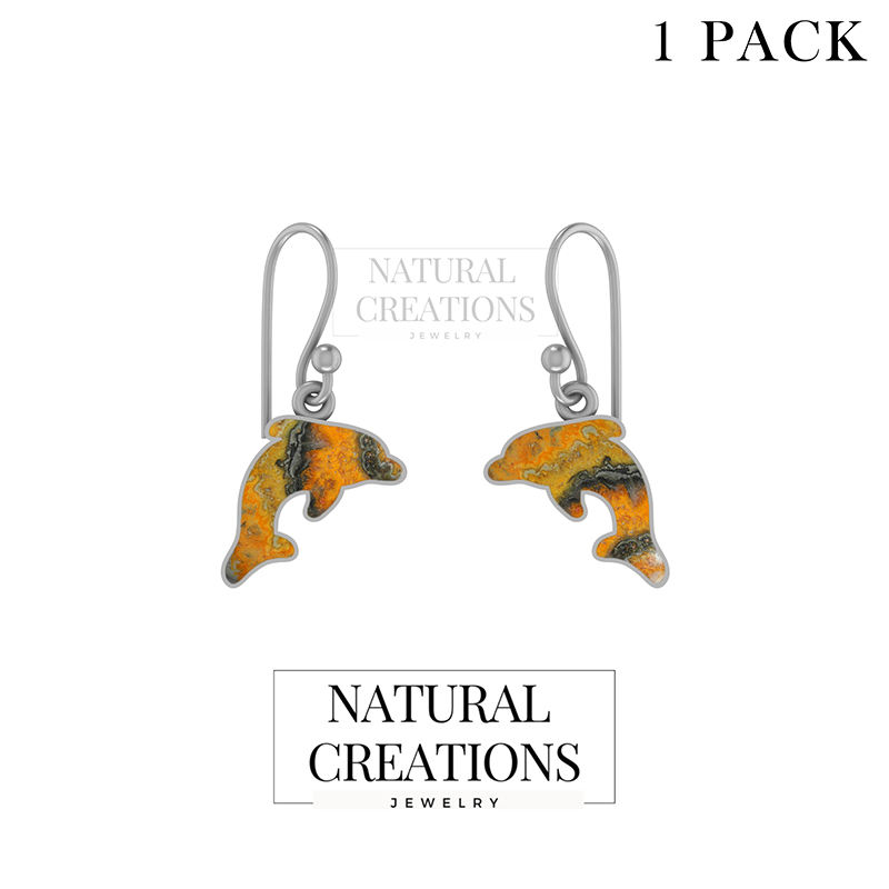 Premium High Finish 925 Sterling Silver Bumble Bee Dolphin Shape Dangle Hook Earrings Bezel Setting Natural 20mm Trendy Wedding