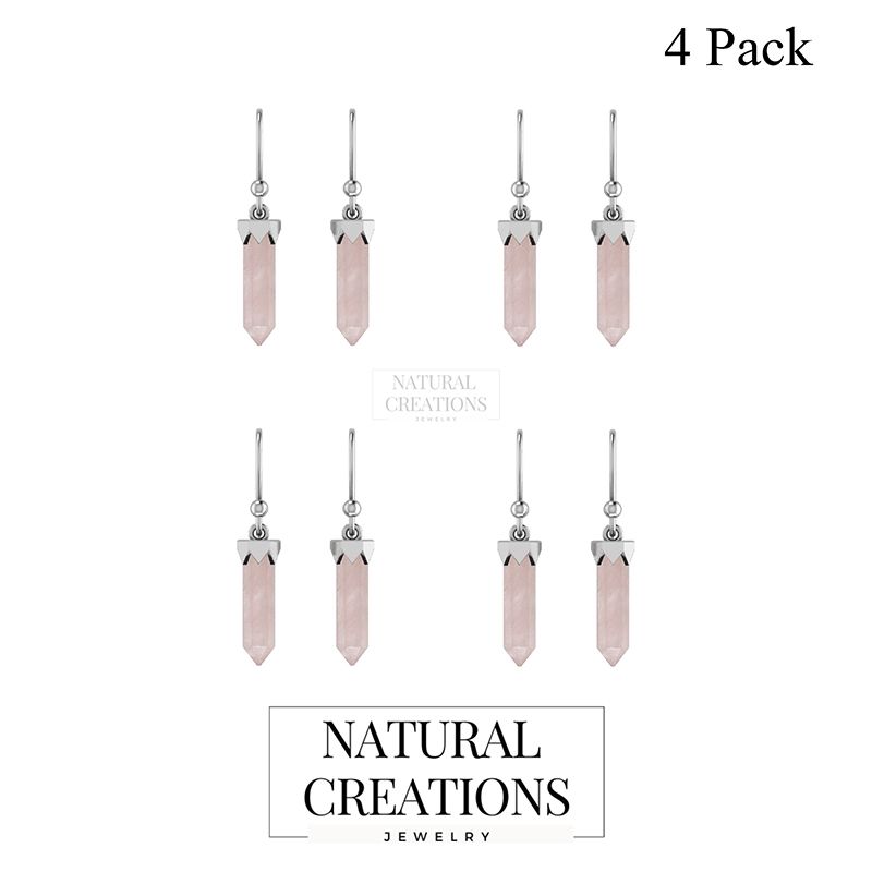 Premium High Finish 925 Sterling Silver Rose Quartz Pencil Shape Dangle Earrings Hook Bezel Setting Trendy Wedding Party Gift