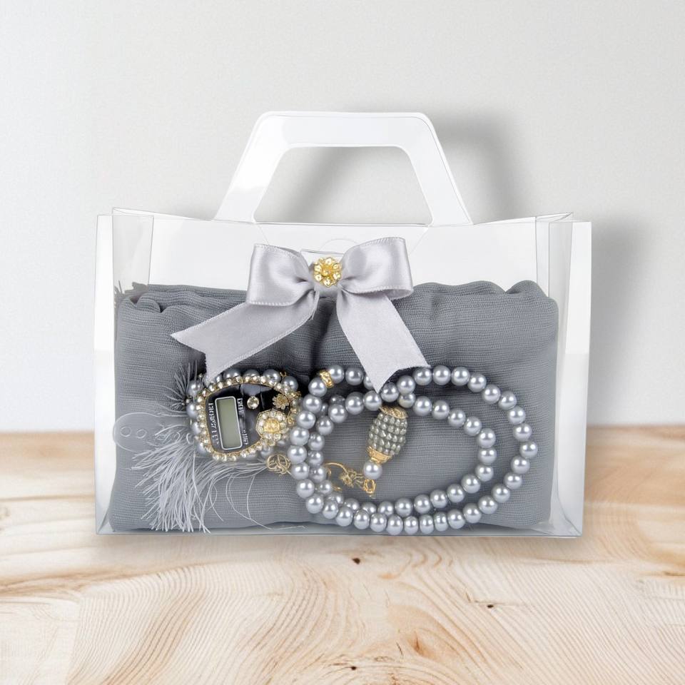 Premium Hijab Gift Set Pink Color 3 Piece Muslim Set with Chiffon Scarf, Prayer Beads Tasbih (99 Beads) & Zikr Counter for Women