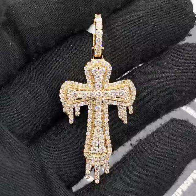Premium Hip Hop Gold Plated Cross Pendant with Dripping Design Iced Out Moissanite Diamond Jewelry Bold Streetwear Accessory