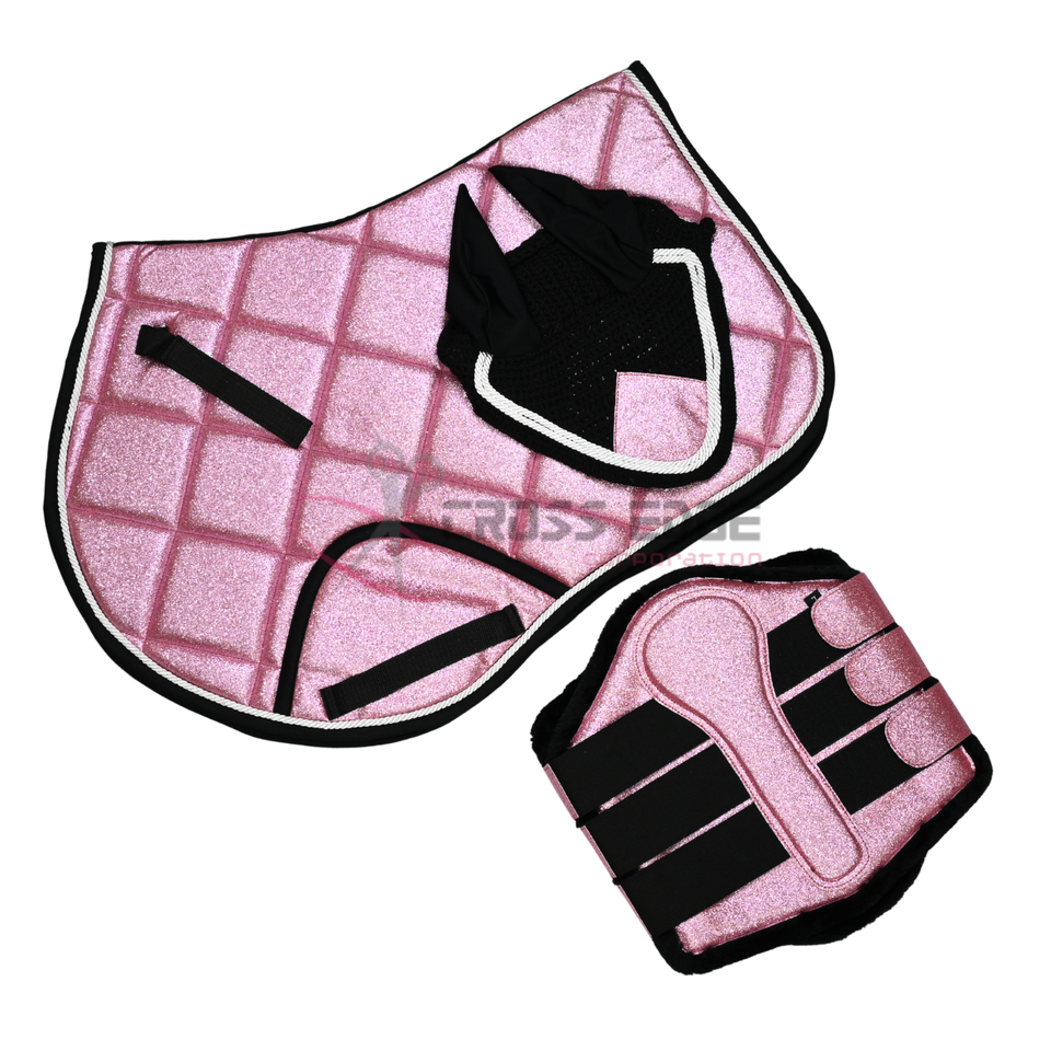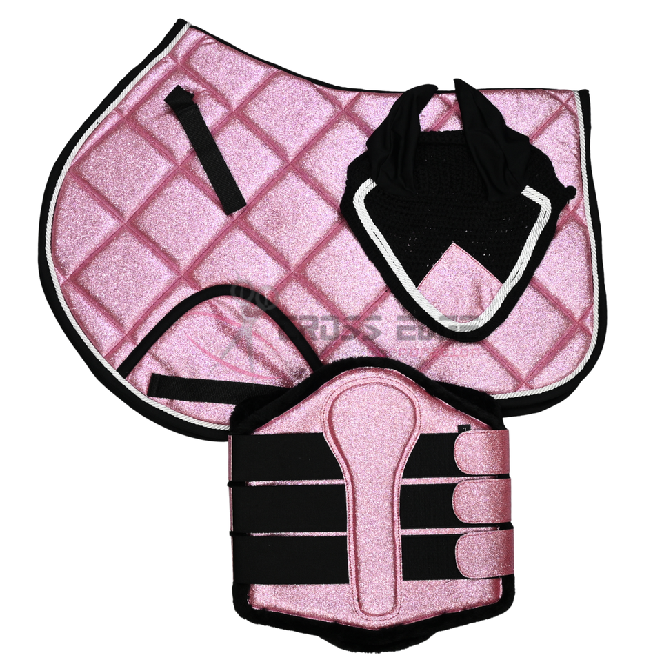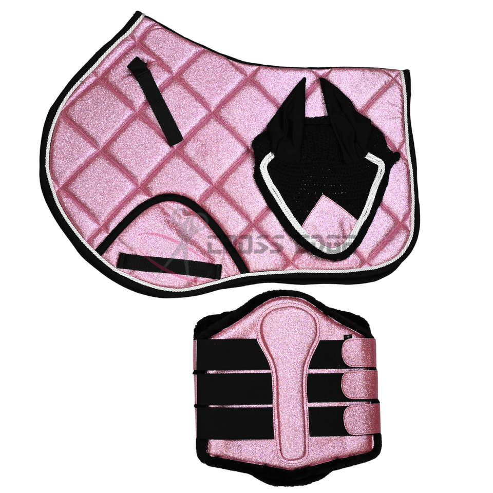 Premium Horse Riding Padded Equestrian Saddle Pad Stylish Glitter Leg Protection Gear Brushing Boots Fly Bonnet