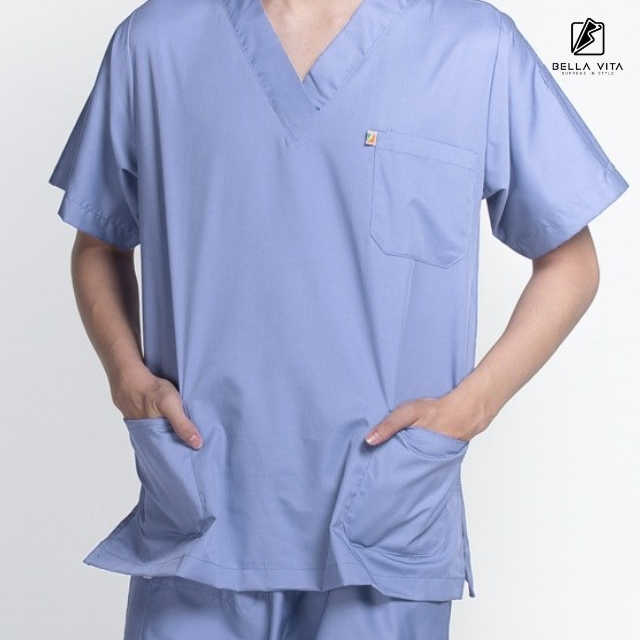 Premium Hospital Uniform Silver Color for Unisex V-Neck Scrub Set with Elastic Waist and Custom Logo Option By BELLA VITA Brand