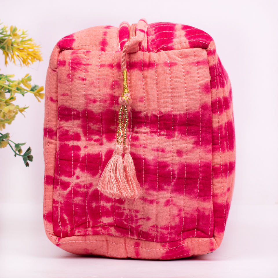 Premium Hot Selling Vintage Large Capacity Zipper Unisex Cotton Quilted Washable Block Printed Handmade for Cosmetic Bags