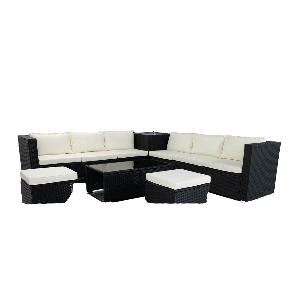 Premium IPRO Pe Rattan Furniture Lounge Como Set with Roof Cover Galvanized Powder Coat Steel 100% Polyester Cushion for Villa