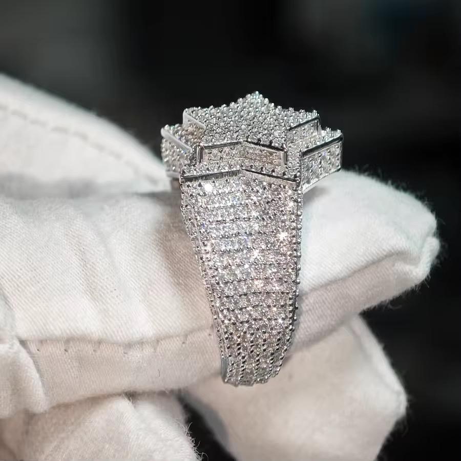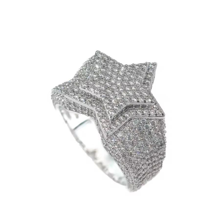 Premium Iced Out Star Ring Sterling Silver Gold Plated VVS Moissanite Diamond Hip Hop Jewelry Round Cut Wholesale Supplier