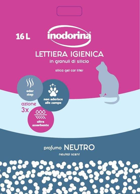 Premium Inodorina Silica Gel Cat Litter Neutral 16L - Absorbs More Than 3X Its Weight - Optimal for Extended Use