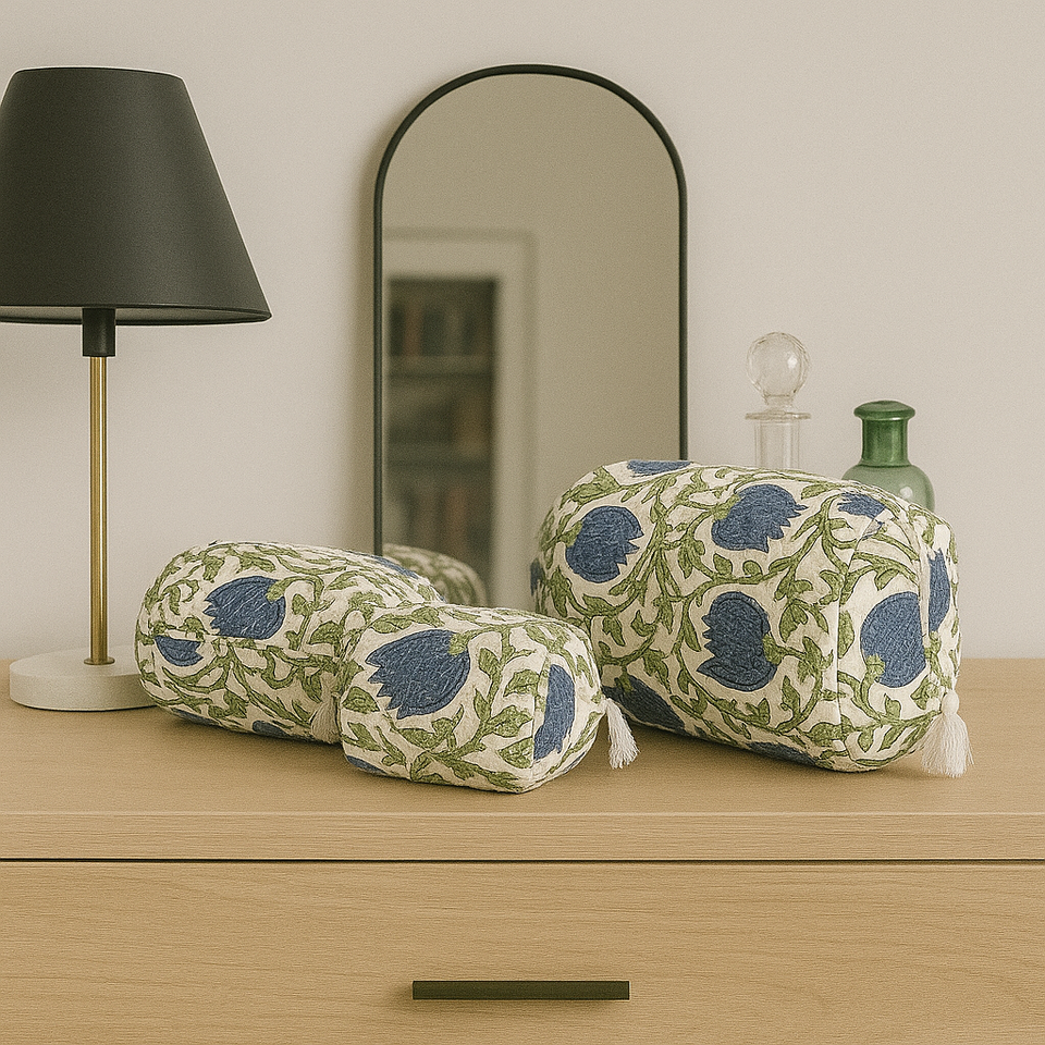 Premium Jaipur Hand Block Printed Quilted for Toiletry Bag Set Women's Floral Soft Cotton Cosmetic Organizer Zip Tassel