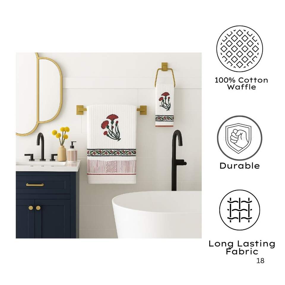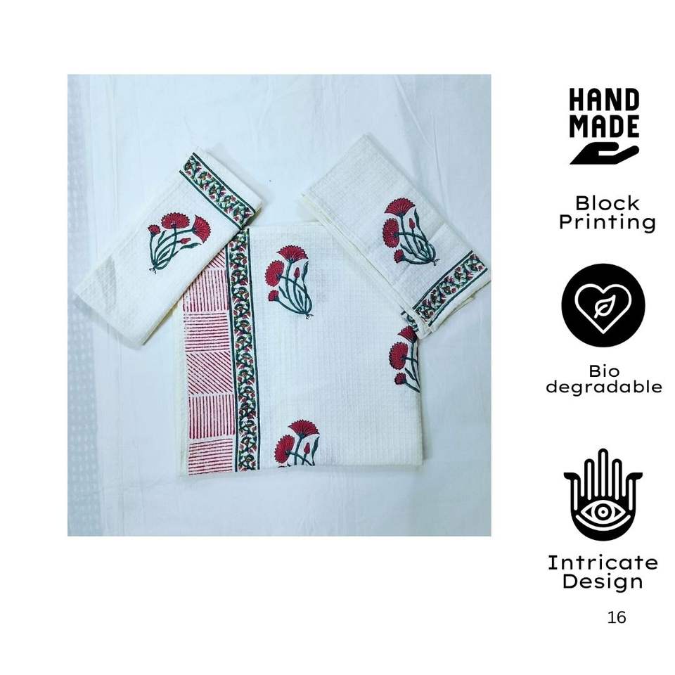 Premium Jaipuri Waffle Cotton Bath Towel Hand Block Printed Golf Artisan Linen Eco-Friendly Quick-Dry Sustainable Sheets