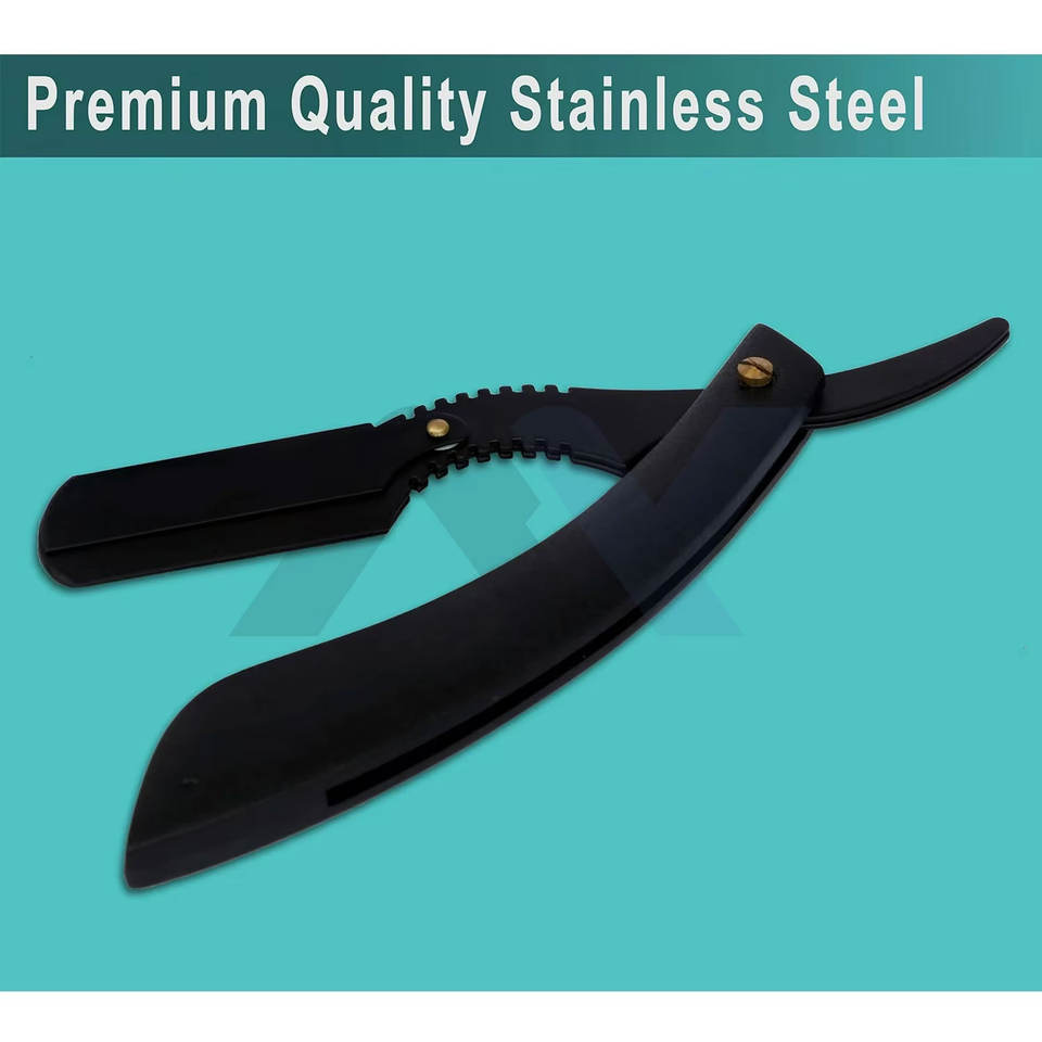 Premium Jet Black Blade Razor Professional Barbers Mens Shaving Tool for Salon and Home Use Ultra Sharp Straight Edge