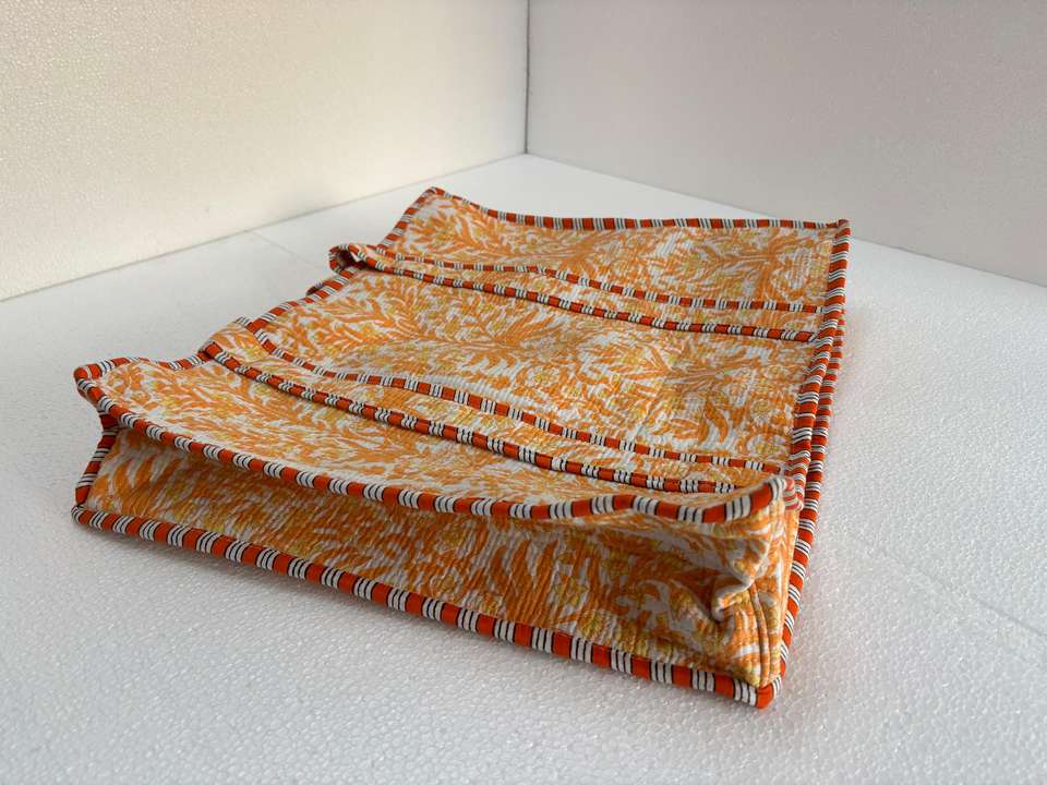 Premium Kantha Quilted Microfiber Tote Bag in Geometric Pattern Sustainable Handcrafted Fabric Carry Bag with Rope Handle