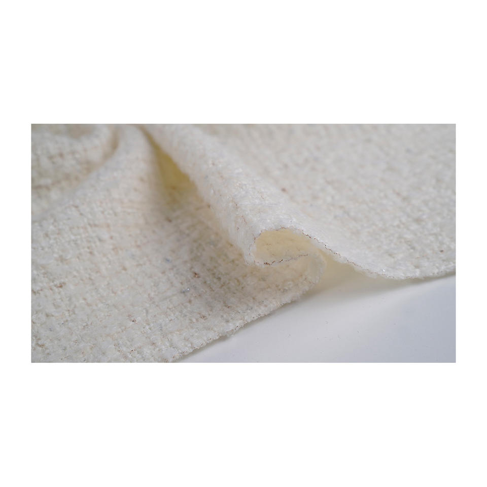 Premium Korean-Made Fancy Tweed Fabric Warm Ivory Silver-Gold Boucle Texture OEM & ODM Custom Woven Textile