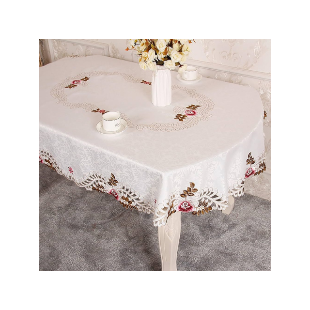 Premium Laced Floral Embroidered New GOTS Certified Durable Ideal Gatherings Families 70x120 Inches Machine Washable Tablecloth
