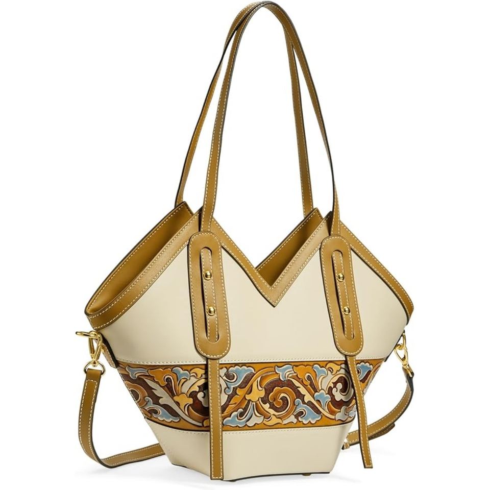 Premium Ladies Crown-Shaped Office Handbag Structured Genuine Leather Tote Bag Elegant Design Large Space For Laptop & Documents