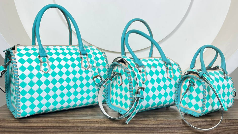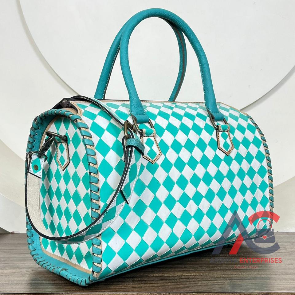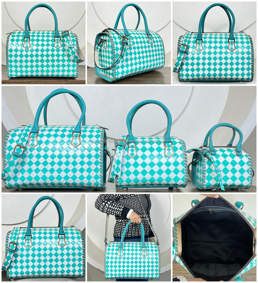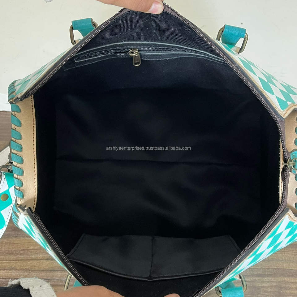 Product name:Hand Tooled Cowhide Leather Checkered Design Duffel Bag