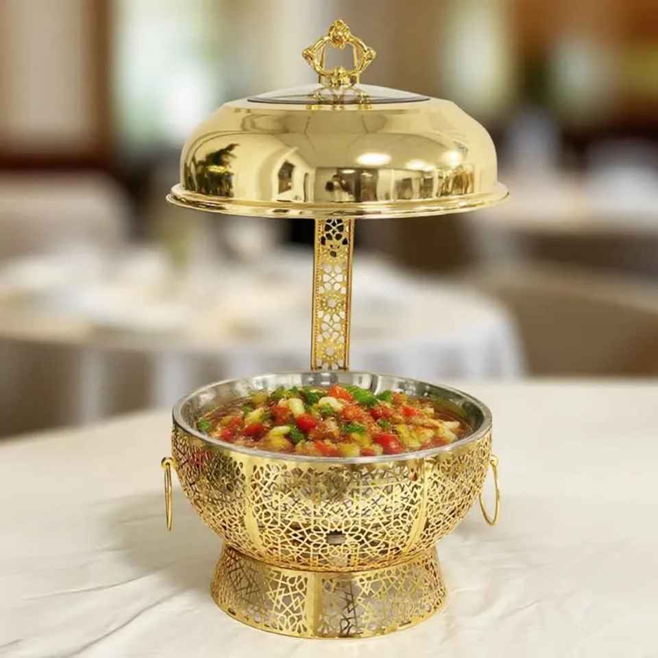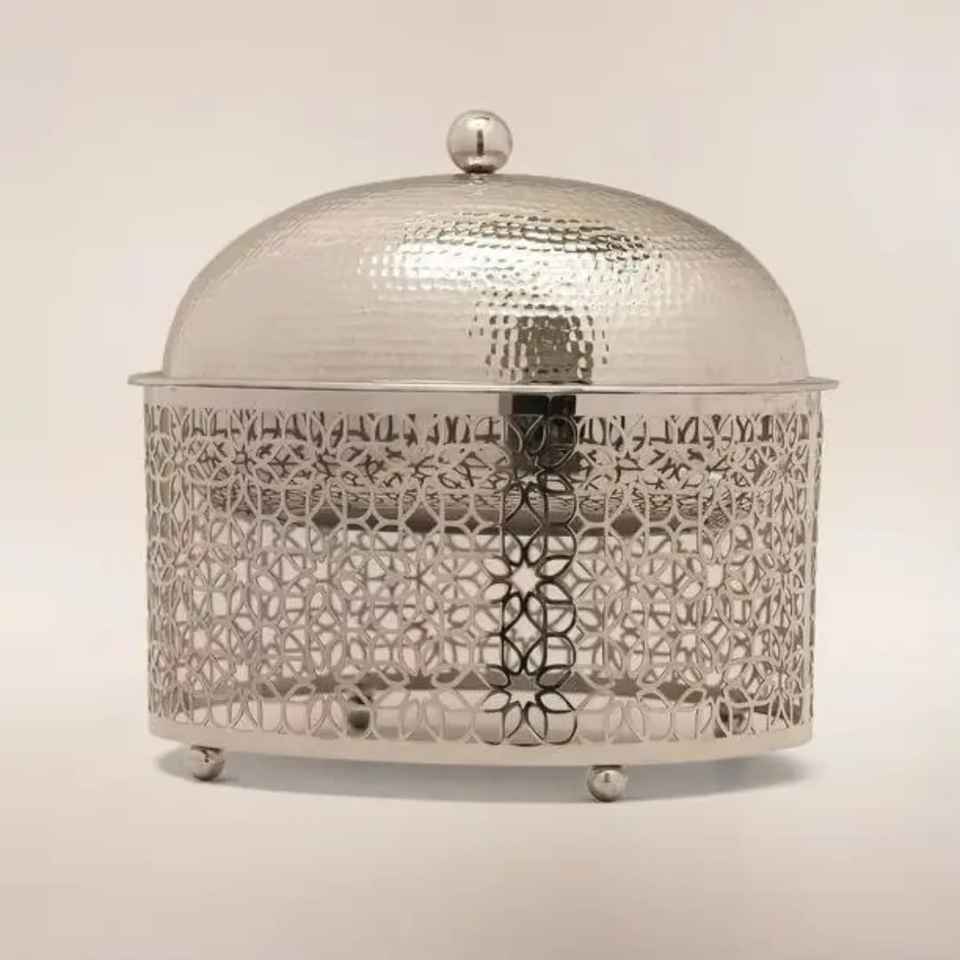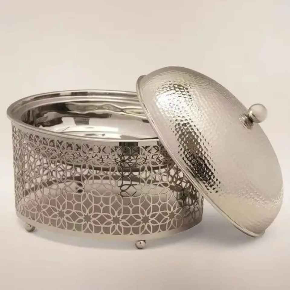Premium Laser Cut Geometric Pattern Casserole with Open Hammered Lid Luxury Stainless Steel Hot Pot for Gourmet Serving