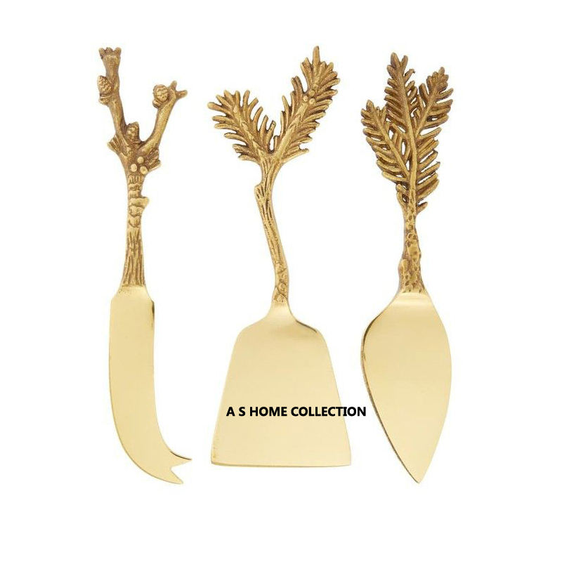 Premium Leaf Handle Brass Spoon and Fork Set Elegant Gold Finish Perfect for Dining Decor Gifting and Server Use