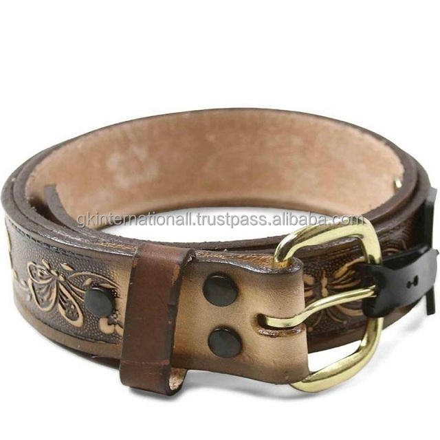 Premium Leather Belt with butterfly Embossed Heavy Brass Finish Chrome Buckle at Wholesale Manufacturer