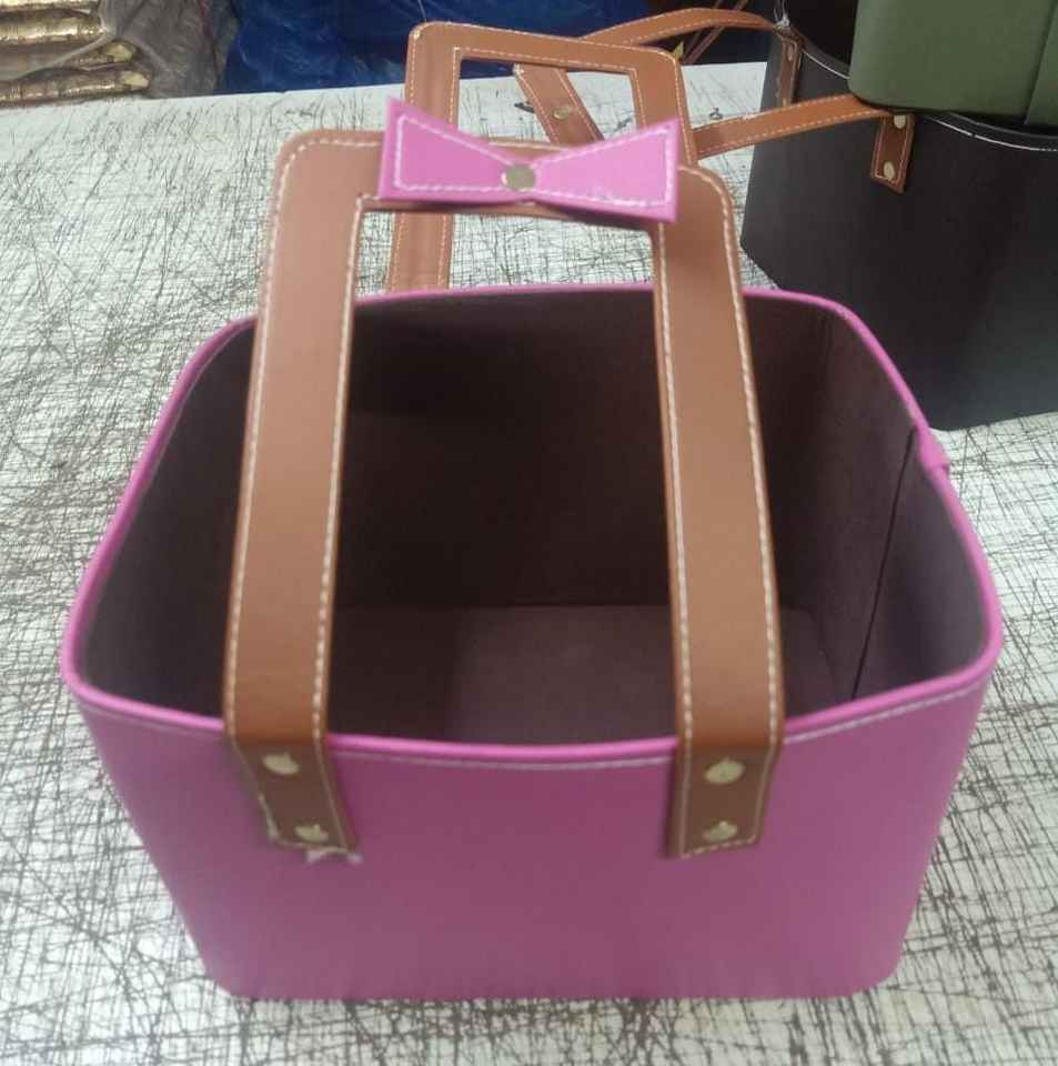 Premium Leather Hamper Hand Basket Gift Flower Leather Hamper Storage Basket for garden dinning room kitchen OEM 2026 Wholesale
