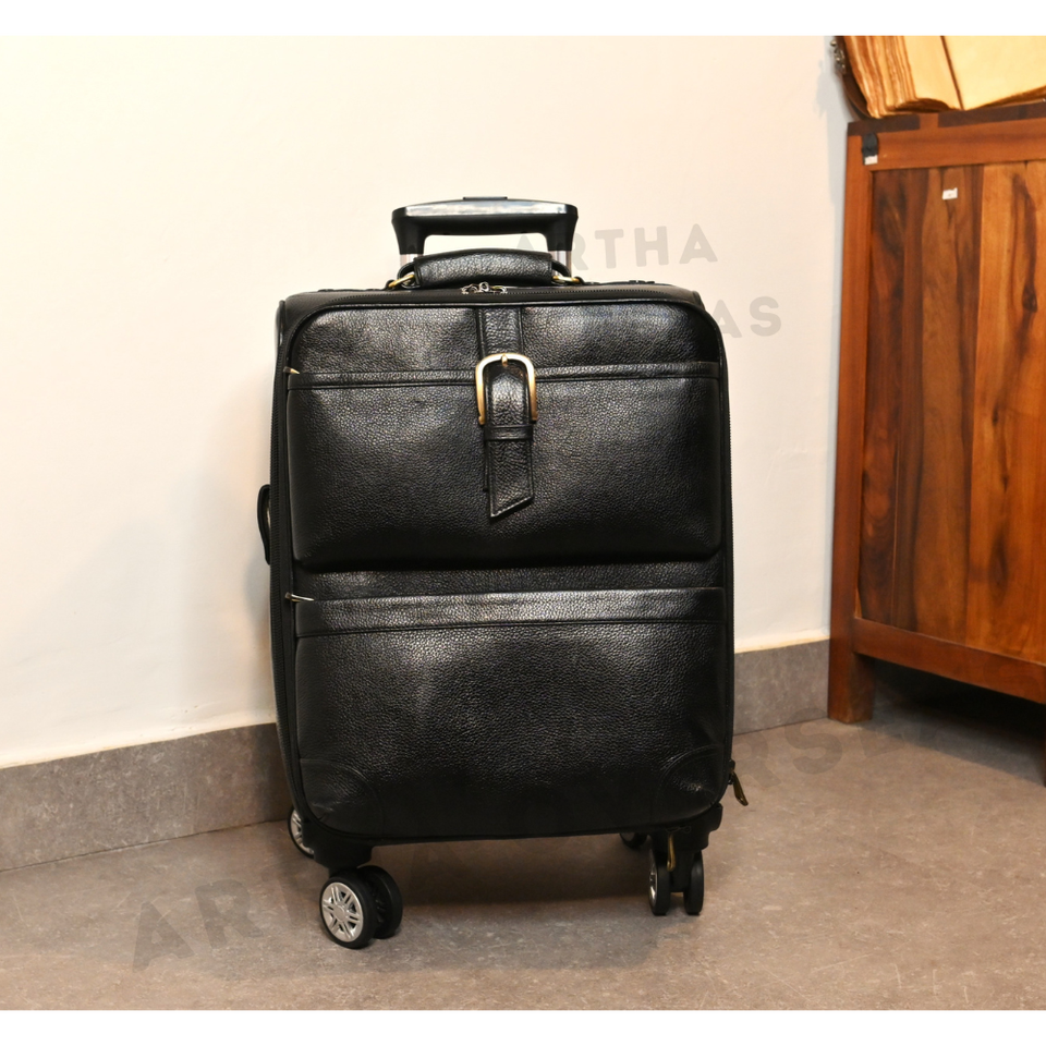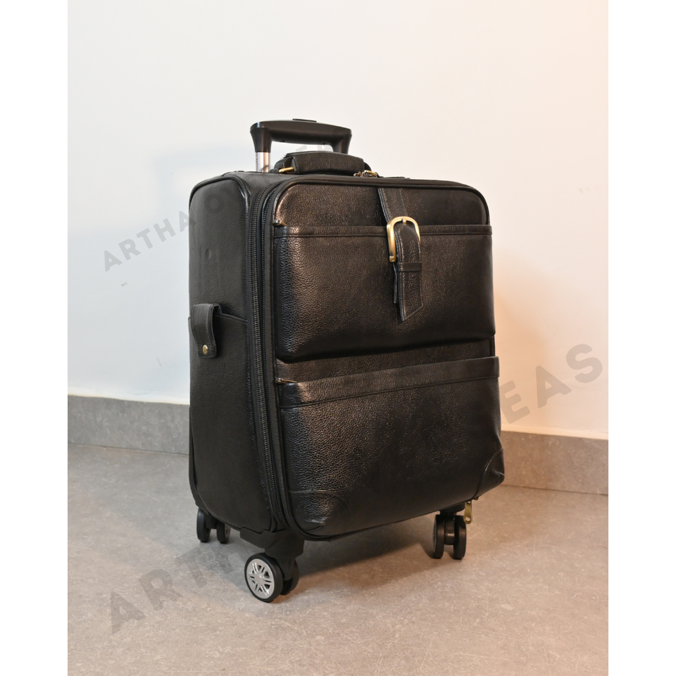 Premium Leather Luxury Trolley Suitcase Portable Large Capacity Traveling Weekend Trolley Bags 360 Degree Wheels Suitcase