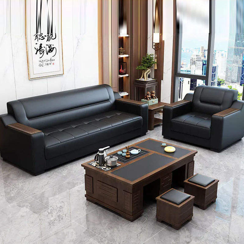 Premium Leather Modern Office Sofa Set Furniture for Executive Reception and Guest Visitor Lounge Waiting Area