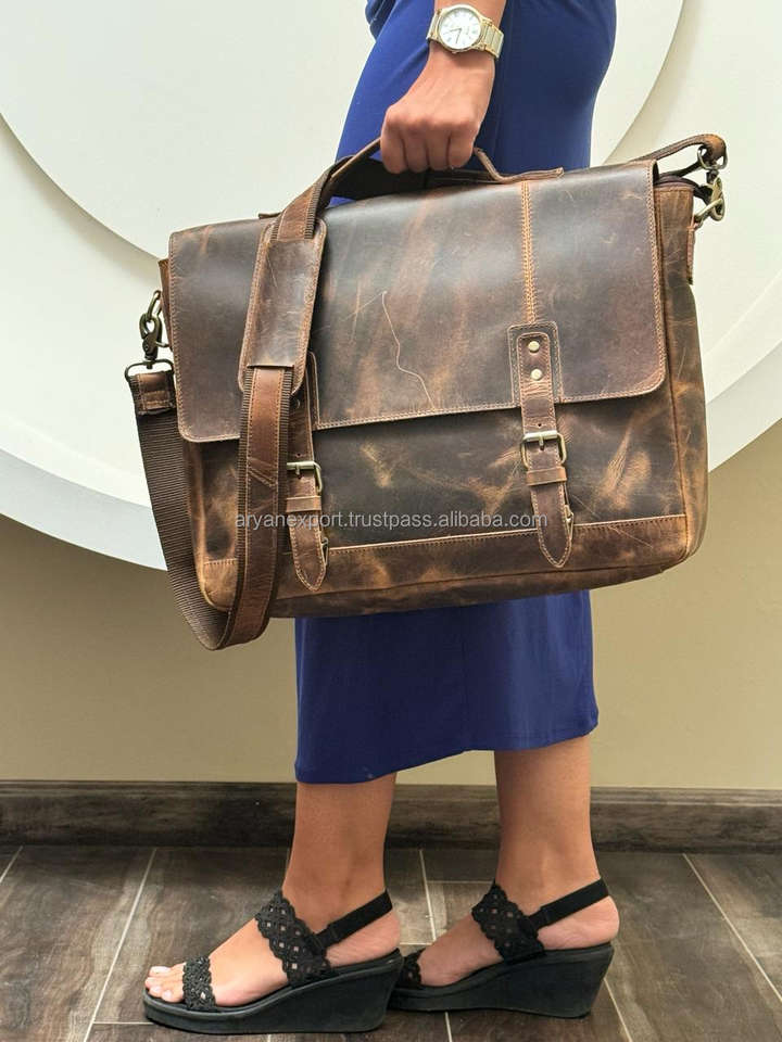 Premium Leather Satchel Office Laptop Bag Full Grain Leather Briefcase Messenger Bag for Men and Women Best Large Conductor Bag